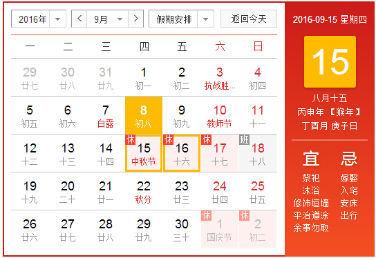 一、2016中秋節(jié)放假安排: