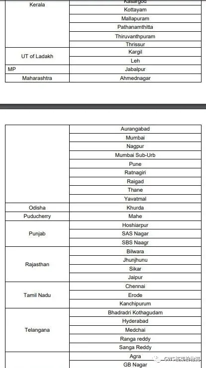 ▼印度官方通知:75個封城列表,包含新德里、孟買、清奈等眾多港口城市