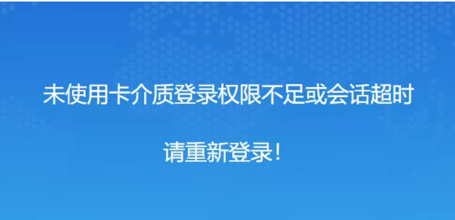 如果以用戶名登錄嘗試訪問(wèn)IC卡權(quán)限頁(yè)面,會(huì)提示“未使用卡介質(zhì)登錄權(quán)限不足或會(huì)話超時(shí)請(qǐng)重新登錄!”,如下圖: