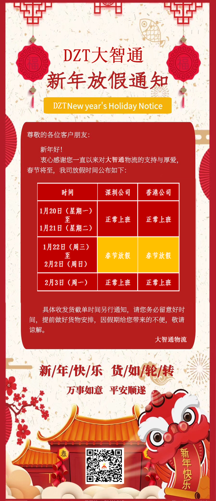 大智通國際物流春節(jié)放假通知