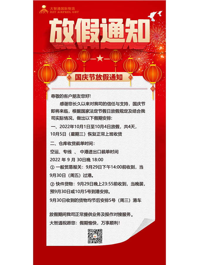請查收|大智通國際物流放假通知來啦!