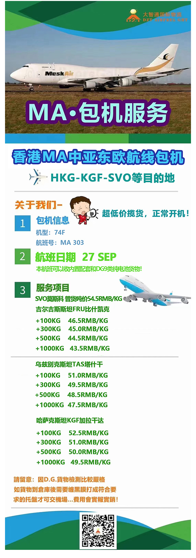 大智通周五好價(jià)好時(shí)效推薦香港MA (Elite Avia Malta) 包機(jī)HKG–KGF–SVO 每星期一班 HKG-KGF-747-400 KGF-SVO-TRUC