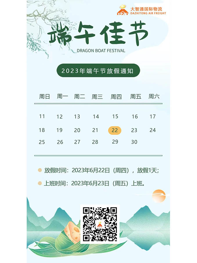 您好!又是一年粽子飄香時(shí),我們將迎來我國重要的傳統(tǒng)節(jié)日——端午節(jié)根據(jù)《國務(wù)院辦公廳關(guān)于2023年部分節(jié)假日安排的通知》的精神,結(jié)合我司實(shí)際情況,2023年端午節(jié)放假通知如下: