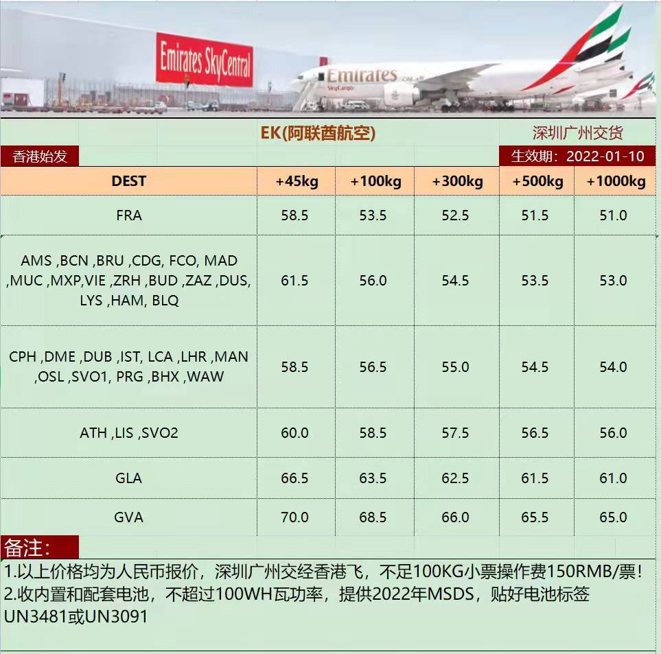 簡單收貨 服務(wù)至上~EK阿聯(lián)酋航空歐線表外變動更新:今日來趕最好時效!本周艙位充足,有貨預(yù)報~更多優(yōu)勢航線敬請咨詢【深圳大智通國際貨運 ...